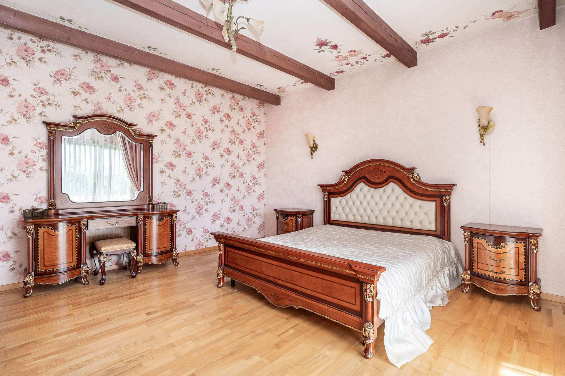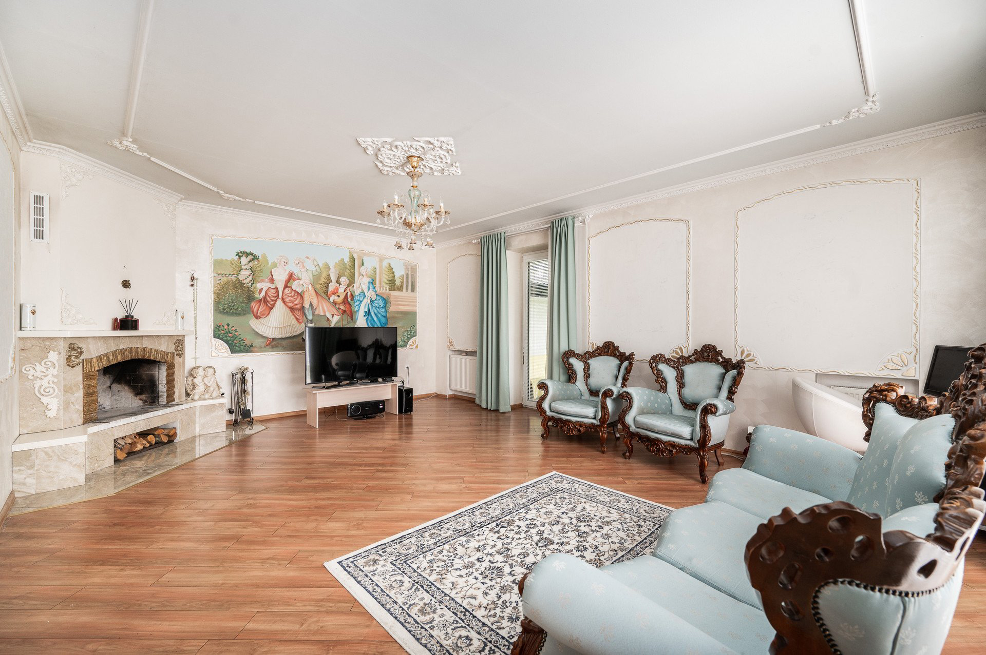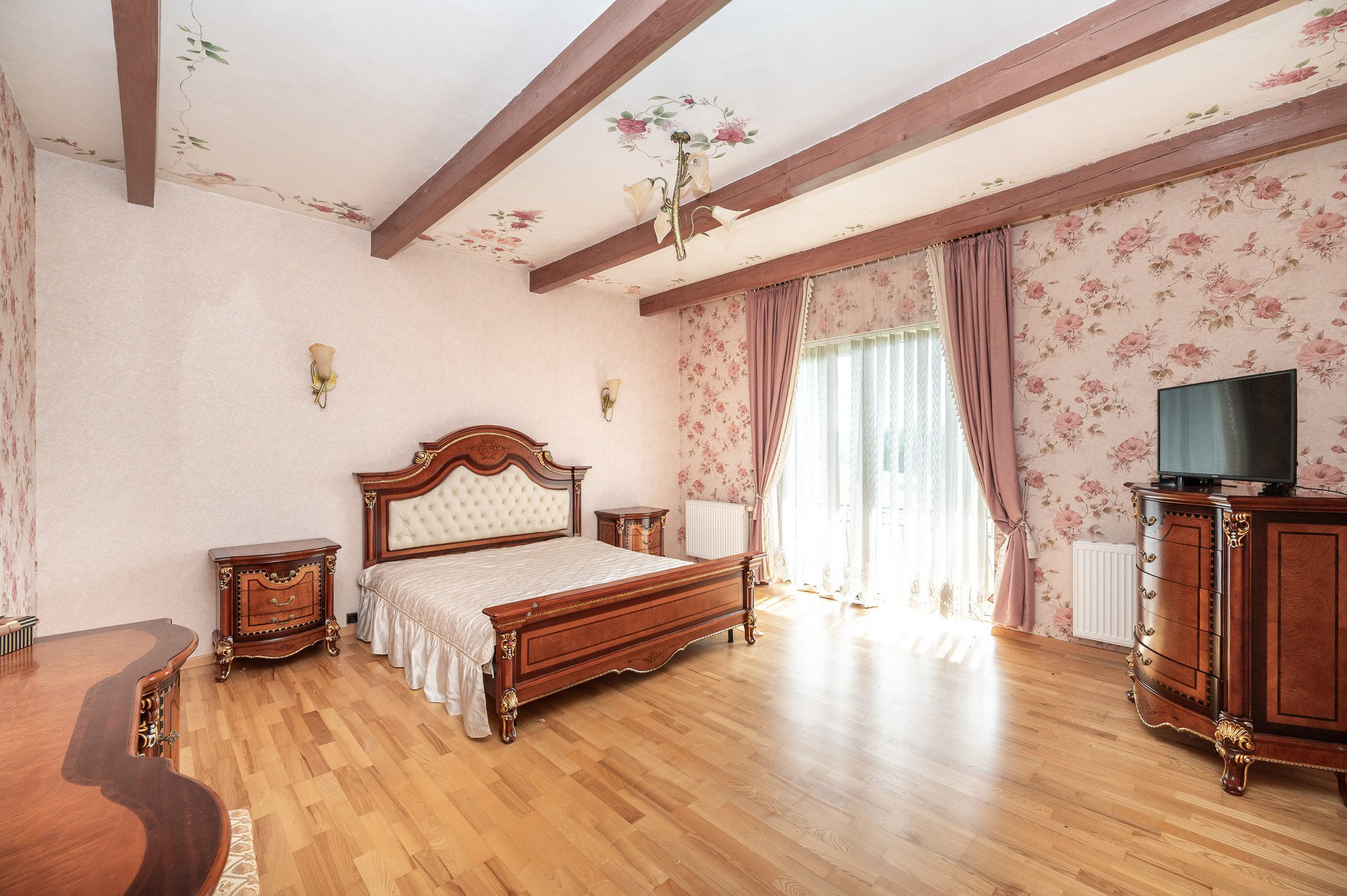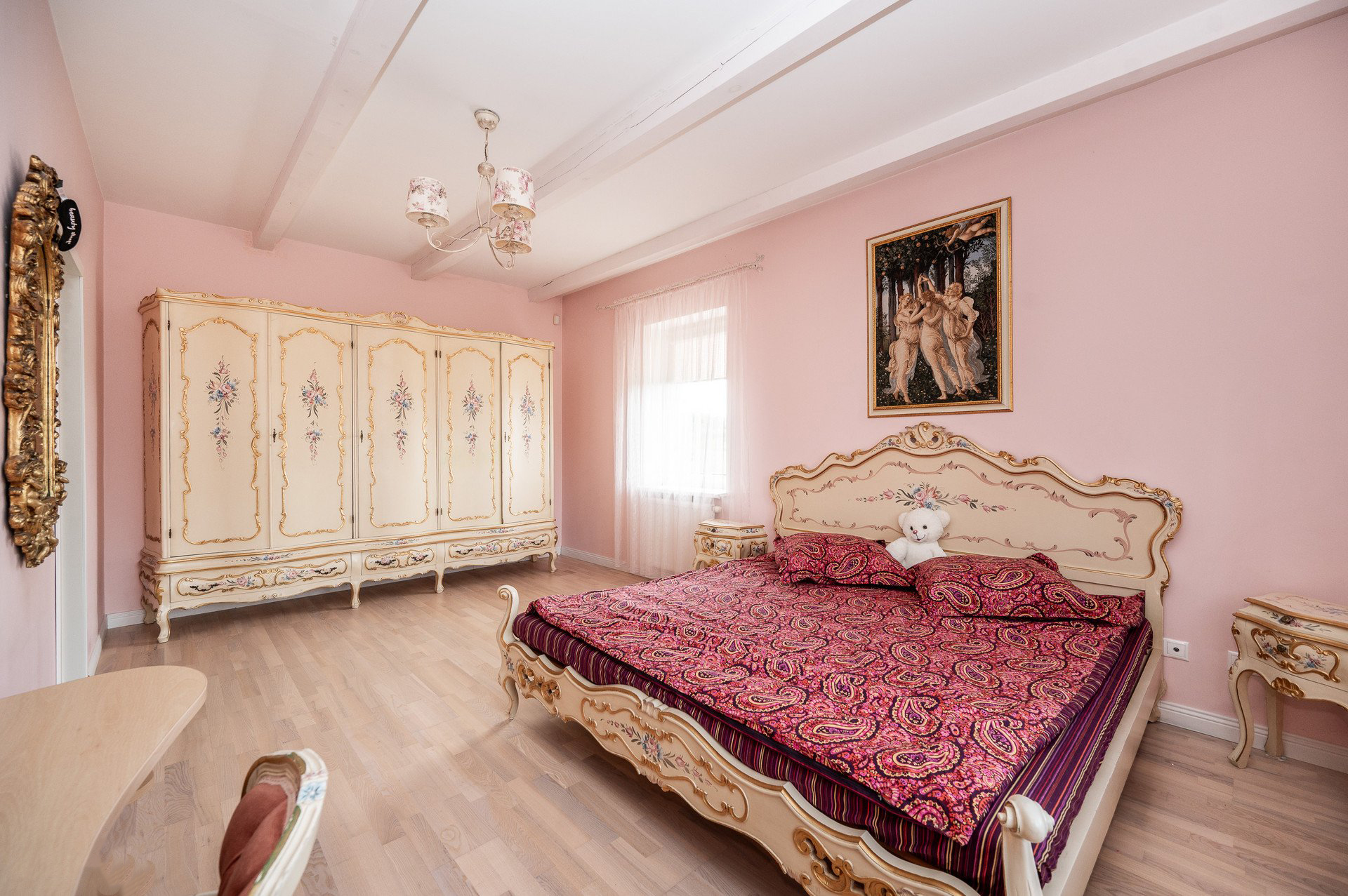 Parduodamas su brangiais, pagal individualų užsakymą pagamintais baldais.