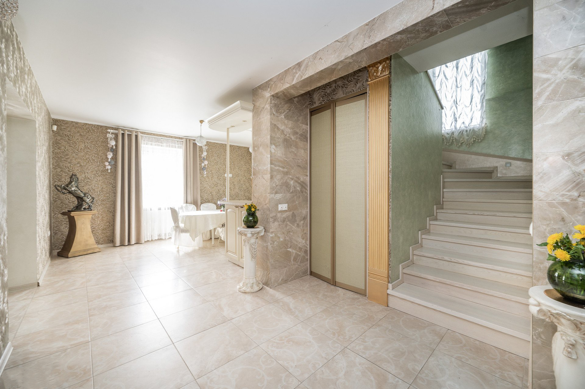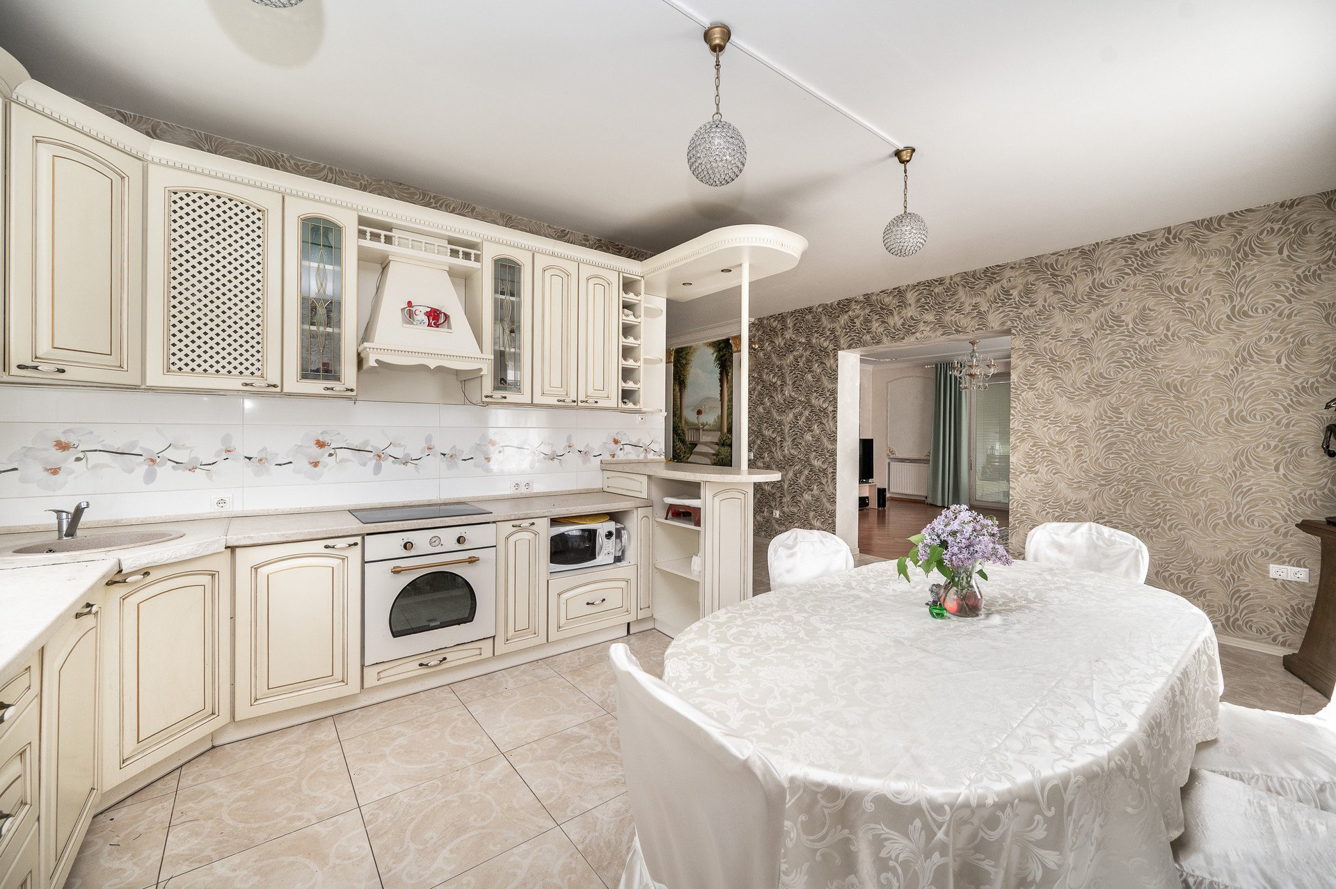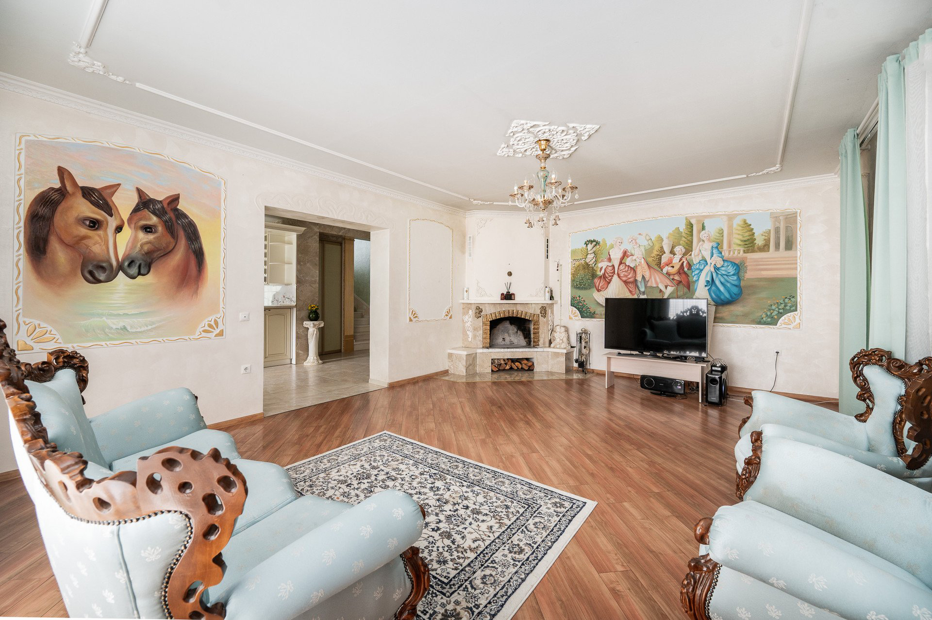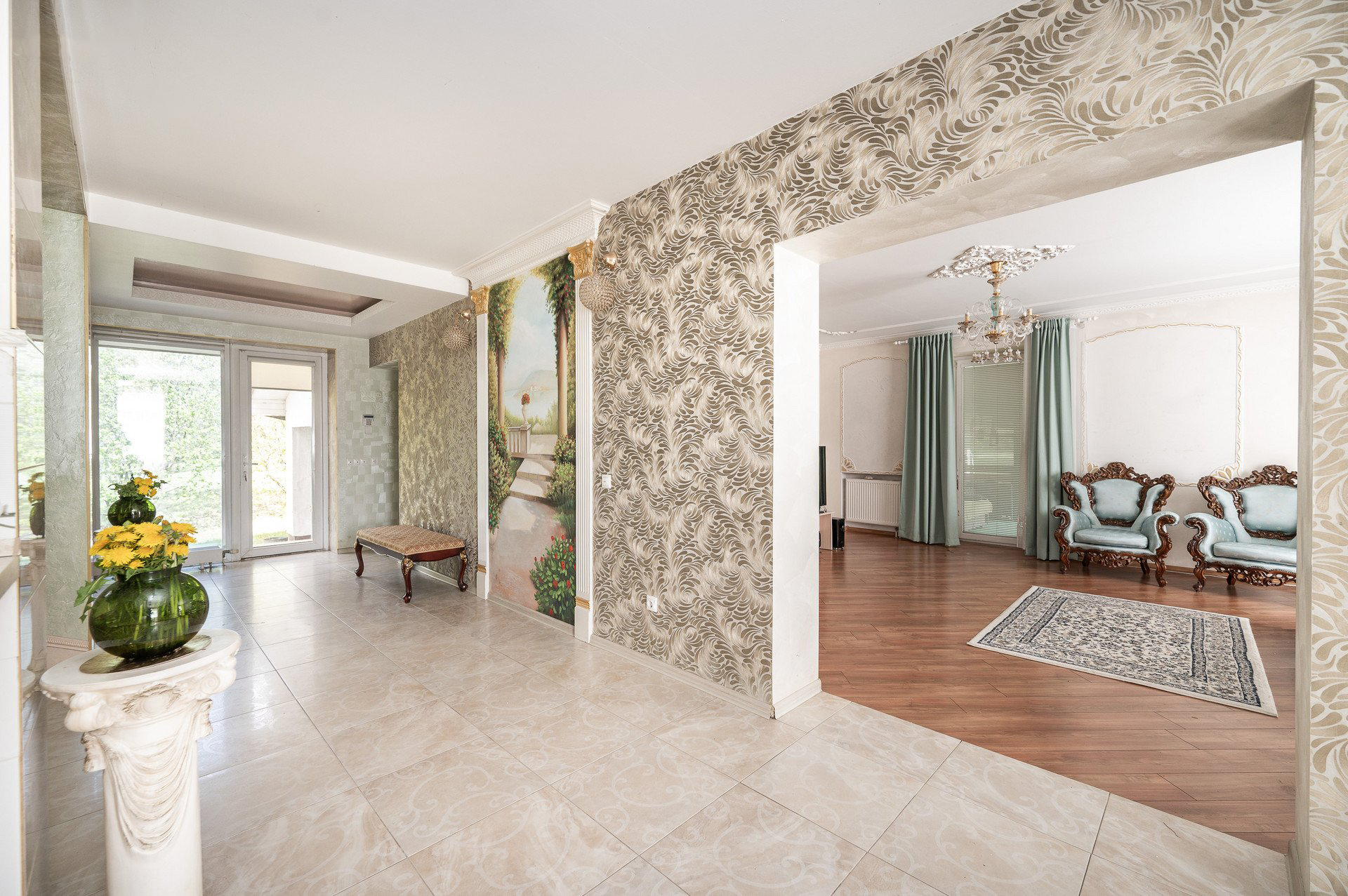 Parduodamas su brangiais, pagal individualų užsakymą pagamintais baldais.